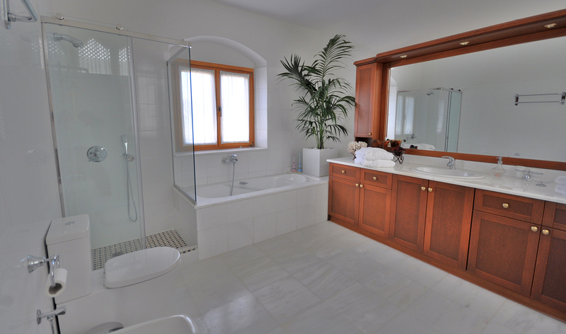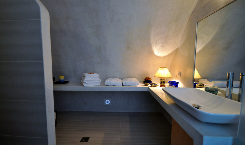 A staircase off the entrance hall leads up to 3 spacious double bedrooms, individually styled and furnished with comfortable beds, top quality linens and all with en-suite facilities and plenty of storage space. All of them have direct access onto a small sitting area, highlighted by a big marble window that helps the area to stay fresh and cool even in the heat of summer!
