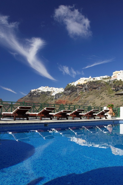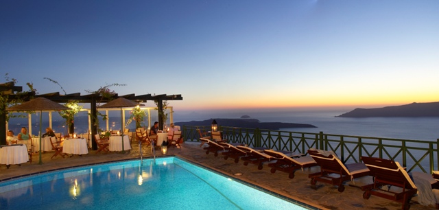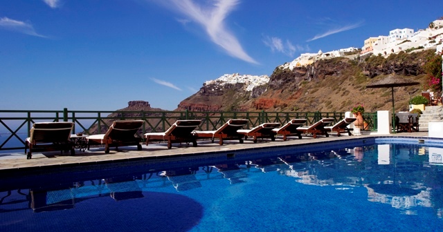 Situated in a peaceful area outside Fira’s centre, Dana Villas offer views of the volcano and the famous Santorini sunset. The elegant rooms are decorated in the traditional Cycladic style.