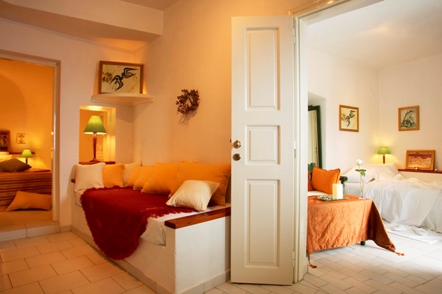 Dana Villas offers a variety of well-appointed rooms and suites. Each is equipped with cable TV, air condition, DVD and CD players, safety deposit box and coffee making facilities. The view of the volcano, caldera and Aegean Sea are guaranteed from all room types and open air premises.