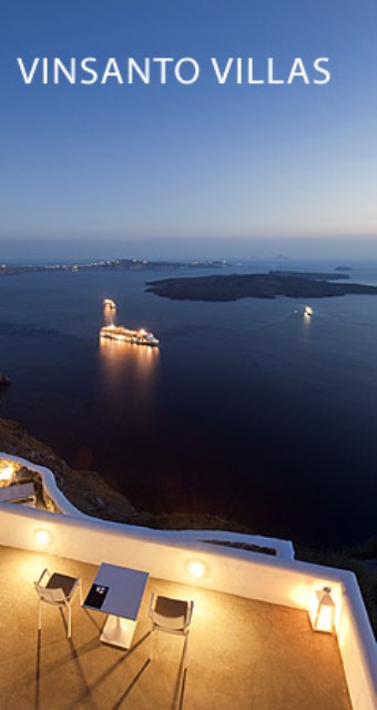 Vinsanto Villas consists of 2 building complexes situated right on the cliff side of Imerovigli village, in Santorini island, offering a magnificent view to the volcano, the deep blue Aegean sea, the island of Thirassia and the colorful magical Santorini sunset.
