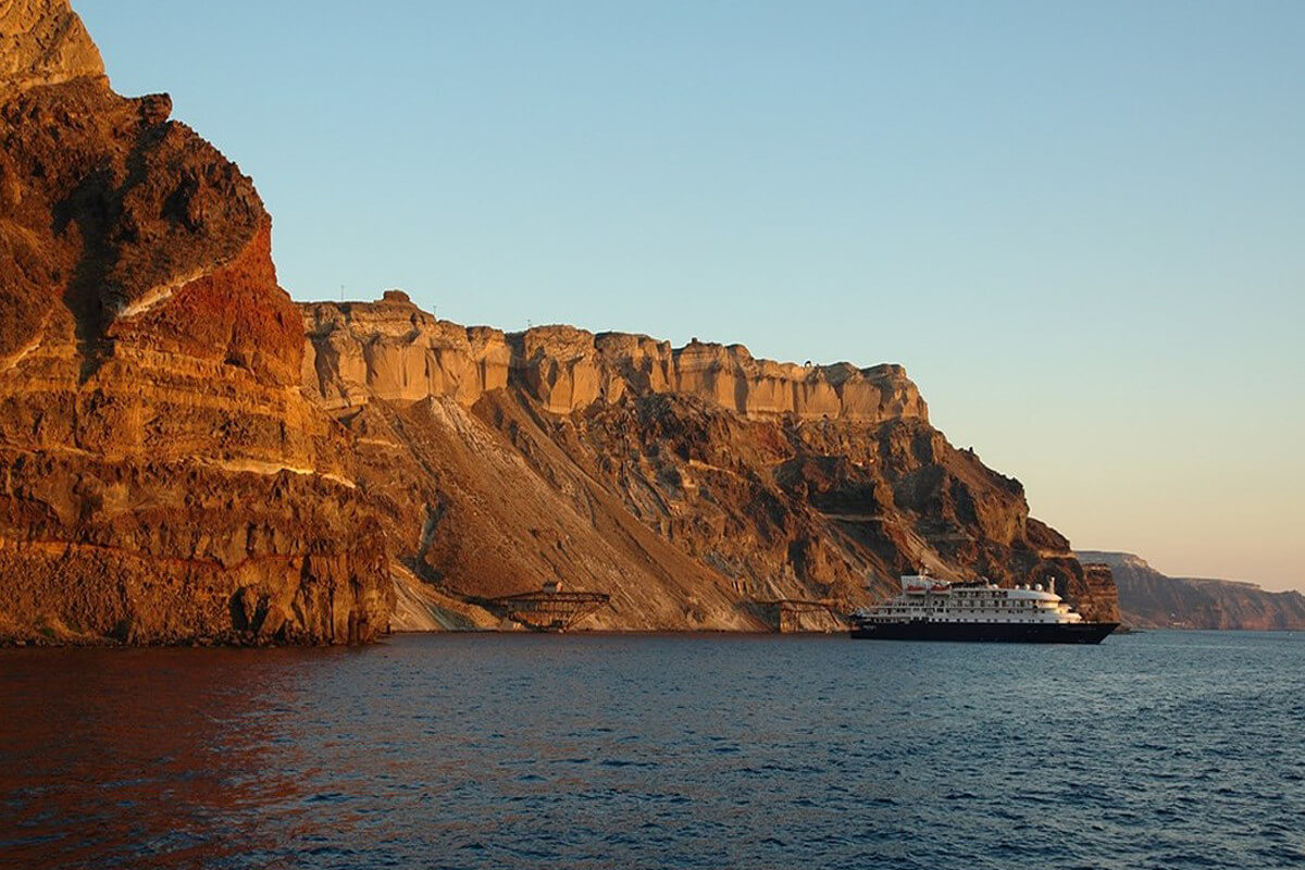 Your tour begins with a stop at the island’s iconic caldera, a striking viewpoint. Then head to Firostefani for a quick 15′ stop, a traditional village filled with many tiny churches, for more insight into the island’s history. We gaze to the Volcano ahead of us, Imerovigli and Oia. The journey continues to Imerovigli where we can see and take pictures of the caves, the place where the old Habitants of the island used to live. Then, we head to the edge of Imerovigli to see the well-known Skaros, an UNESCO protected mountaint that really floats on the air and take pictures of the region. On the way to Oia, we can witness red, black and yellow volcanic lava on the left side of the mini bus. ON the right side we see the Caldera and the Aegean Sea and the second island volcano, Coloumbos, which is underwater. Our tour ends at Oia.